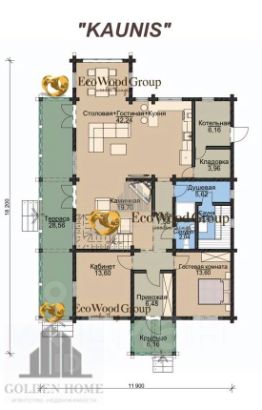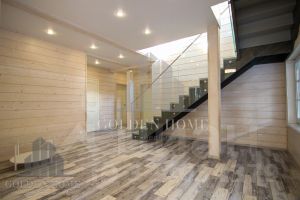 1 этаж : просторная кухня-гостиная, гостевая спальня, кабинет, душевая, сауна, санузел, кладовка, котельная и терраса 29м2.