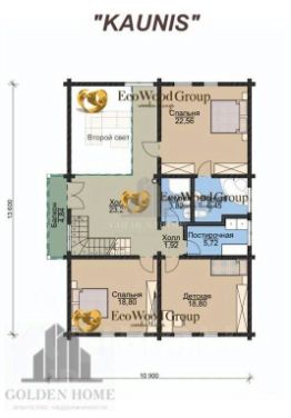 2 этаж : три спальни, одна из которых с собственным санузлом, балкон, холл, совмещенный санузел и постирочная.