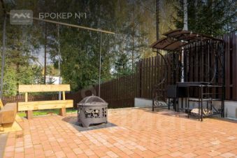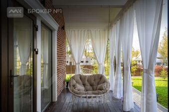 Общая площадь дома 150 кв.м. вместе с мезонином. В доме есть две спальни и гардеробная. Кухня-гостиная 25 кв.м. Один санузел (можно сделать второй).