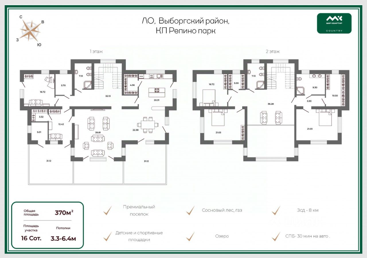 Резиденция площадью 380 кв.м находится в тупиковой улочке в одном из лучших коттеджных поселков Ленинградской области - РЕПИНО ПАРКЕ.