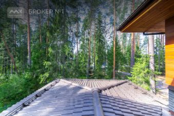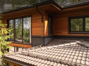 Красивый и гармоничный в своем архитектурном решении дом полностью вписан в природный ландшафт хвойного леса. В отделке фасада и крыши использованы качественные премиальные материалы.