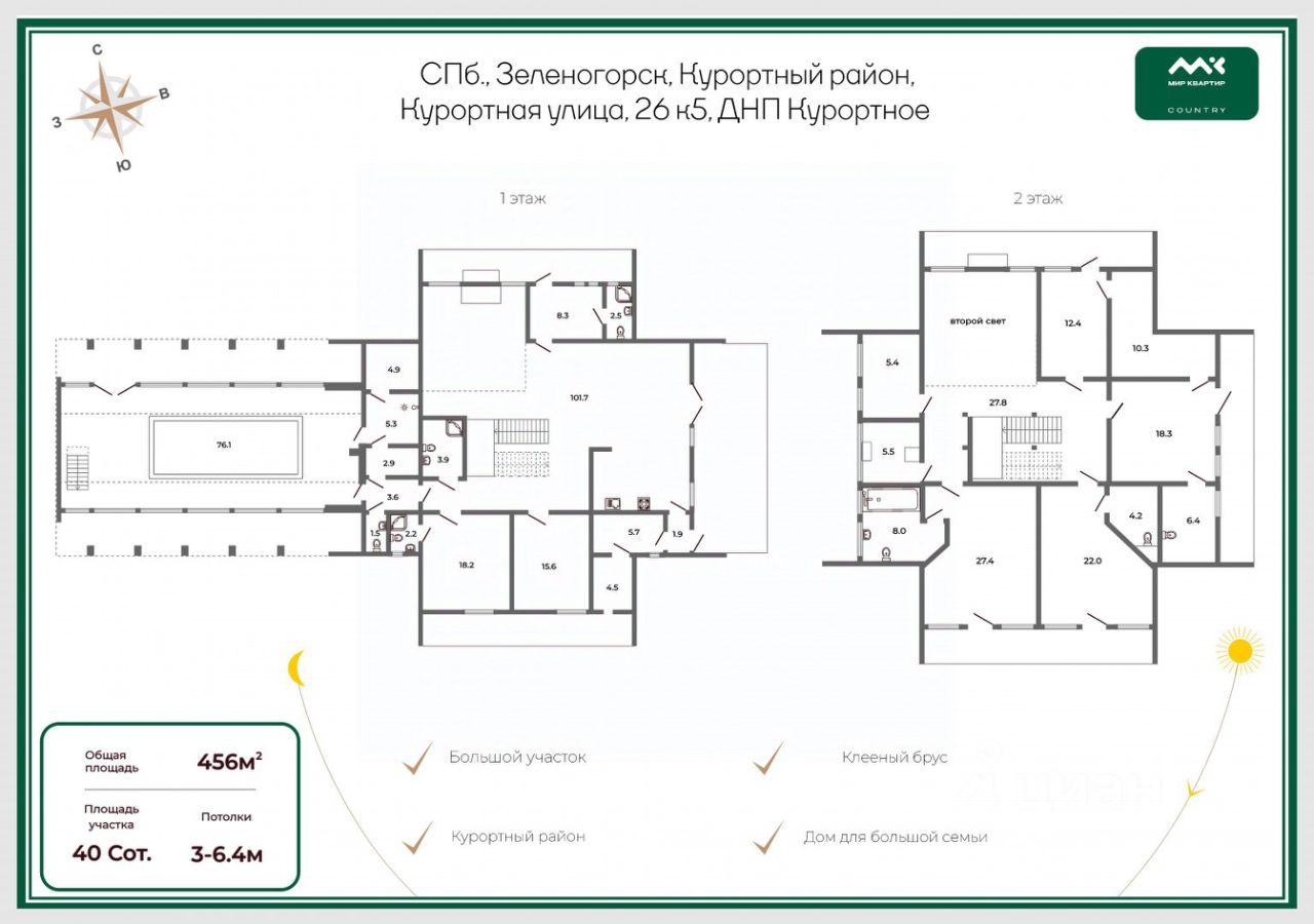 Арт. 71259527 Просторный, необычный, но при этом комфортный и практичный, дом из клееного бруса. Подойдет для постоянного проживания, общей площадью 456 м2,позволяет с комфортом разместиться большой семье.