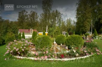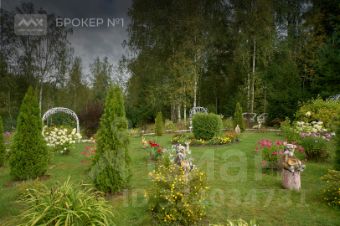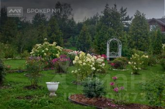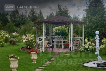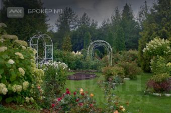 Участок с ландшафтным дизайном, ухоженными клумбами и беседками.