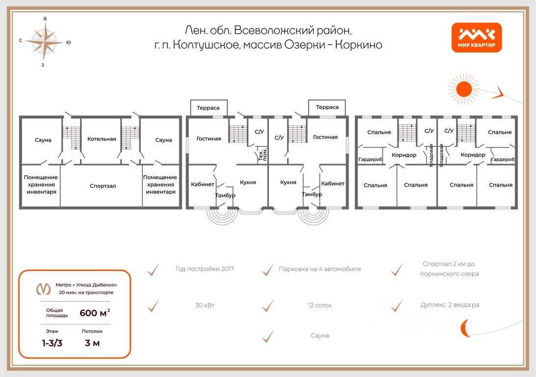 Арт. 118864826 Дуплекс 600 метров, участок 12 соток! Баня, сауна, спортзал! Всего 2 км до Коркинского озера!