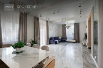 1 этаж это единое пространство, в котором соединены кухня и гостиная (67 кв.м), Выполнено разноуровневое освещение, высокий полоток и панорамные окна в пол. Просторная гостиная воплощение изысканного и современного дизайна с вневременной элегантностью и эстетикой, в светлой палитре оттенков. Кухня оборудована просторными столешницами, интегрированной техникой европейских производителей, уютным освещением. Кухня и гостиная имеют выходы на просторную террасу-патио для обедов на свежем воздухе, здесь всегда можно расположиться с чашечкой ароматного чая или собраться за разговорами всей семьей.