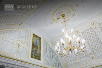 Внутреннее убранство хозяйской части дома выполнено в царском стиле руками мастеров- реставраторов Эрмитажа: мрамор, лепнина и натуральная позолота! Двери выполнены по индивидуальному заказу. Витражи ручной работы изготовлены мастерской дизайна И. Васильевой.