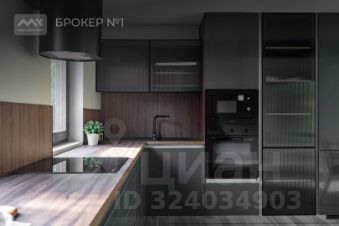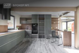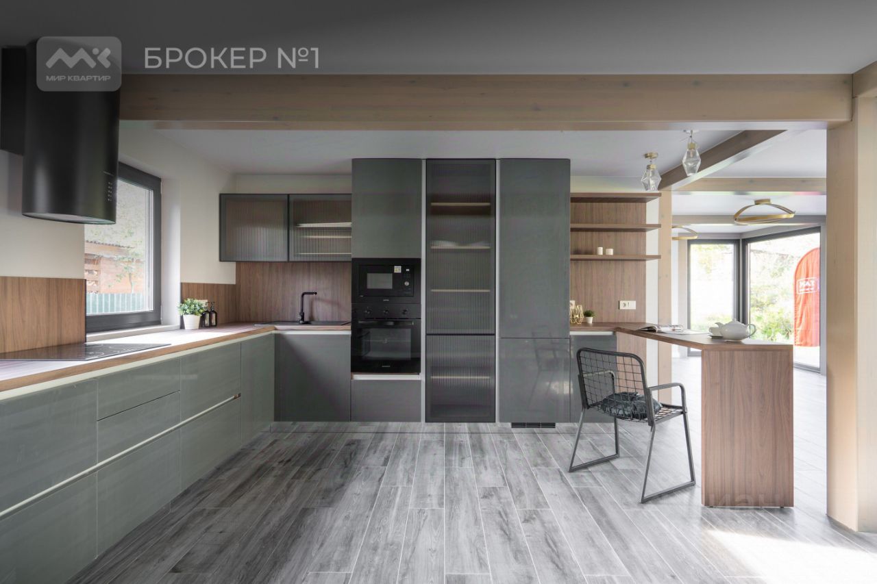 просторная кухня-гостиная (54 м²) , где установлен гарнитур со всей необходимой техникой;