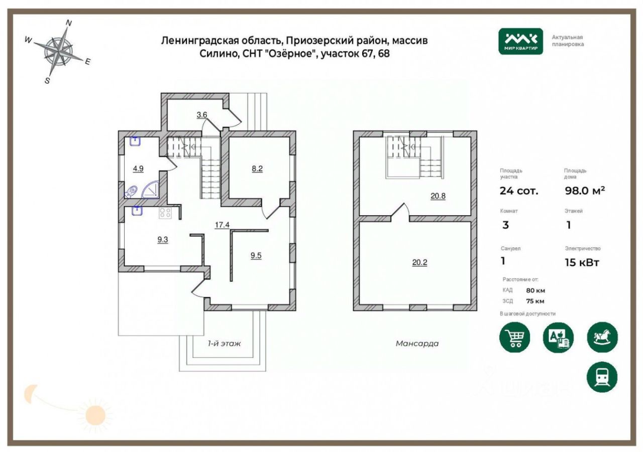Арт. 50041999 Здесь уникальная, настоящая природа! В тишине, между озером и рекой, на месте старого финского хутора, на самой высокой точке, 24 сотки в окружении леса!