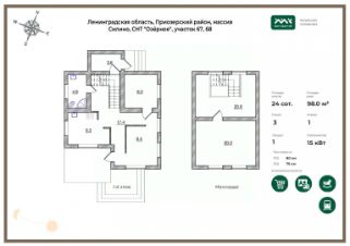 На участке построен дом, хозяйственный дом-беседка, баня. Основной дом сложен из правильного бревна. Щелей нет, тёплый, экономичный двухэтажный дом оснащён электричеством, водой из собственной скважины (вода проверена, паспорт есть), дизельным и электрическим котлами отопления. Вся отделка из натурального дерева. Полностью оснащённая кухня, совмещённый санузел.