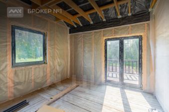 Материал стен - утепление Rockwool, 275 мм. Фасад выполнен из термодревесины с имитацией клееного бруса.