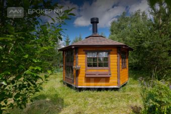 Беседка расположена на холме. Проведено электричество. Фундамент сваи, стены деревянный каркас. В центре беседки расположен мангал. Вместиость - до 12 человек. Беседкой можно пользоваться с поздней весны и до глубокой осени. Рядом установлен тандыр.