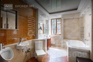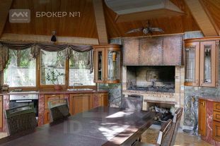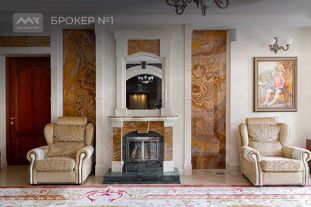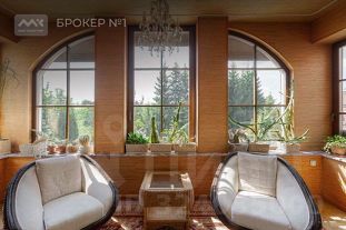 Предлагается к продаже загородная резиденция, расположенная на земельном участке ИЖС площадью 36 соток с ландшафтным дизайном и собственным прудом. Здесь расположены 2 дома, построенные из кирпича. В основном доме площадью 347,8 кв.м находятся 2 открытые террасы на 1 этаже, гостиная с камином(47.6 кв.м), кухня-столовая (36.8 кв.м), просторная спальня (25,6 кв.м) с зимним садом и ванной комнатой (13.8 кв.м), гардеробная.Высота потолков 3.17. Отдельное помещение на межэтажном уровне оборудовано встроенной холодильной камерой. На 2 этаже располагается комната отдыха (35.2 кв.м) с камином и зимним садом, кабинет-спальня (25,7 кв.м), детская комната (18,4 кв.м) и спальня (17,3 кв.м) с балконом, ванная комната с душевой и большая гардеробная(14.1 кв.м). На 3, мансардном этаже: 2 гостевые спальни (24 и 14 кв.м.), санузел и гардеробная.