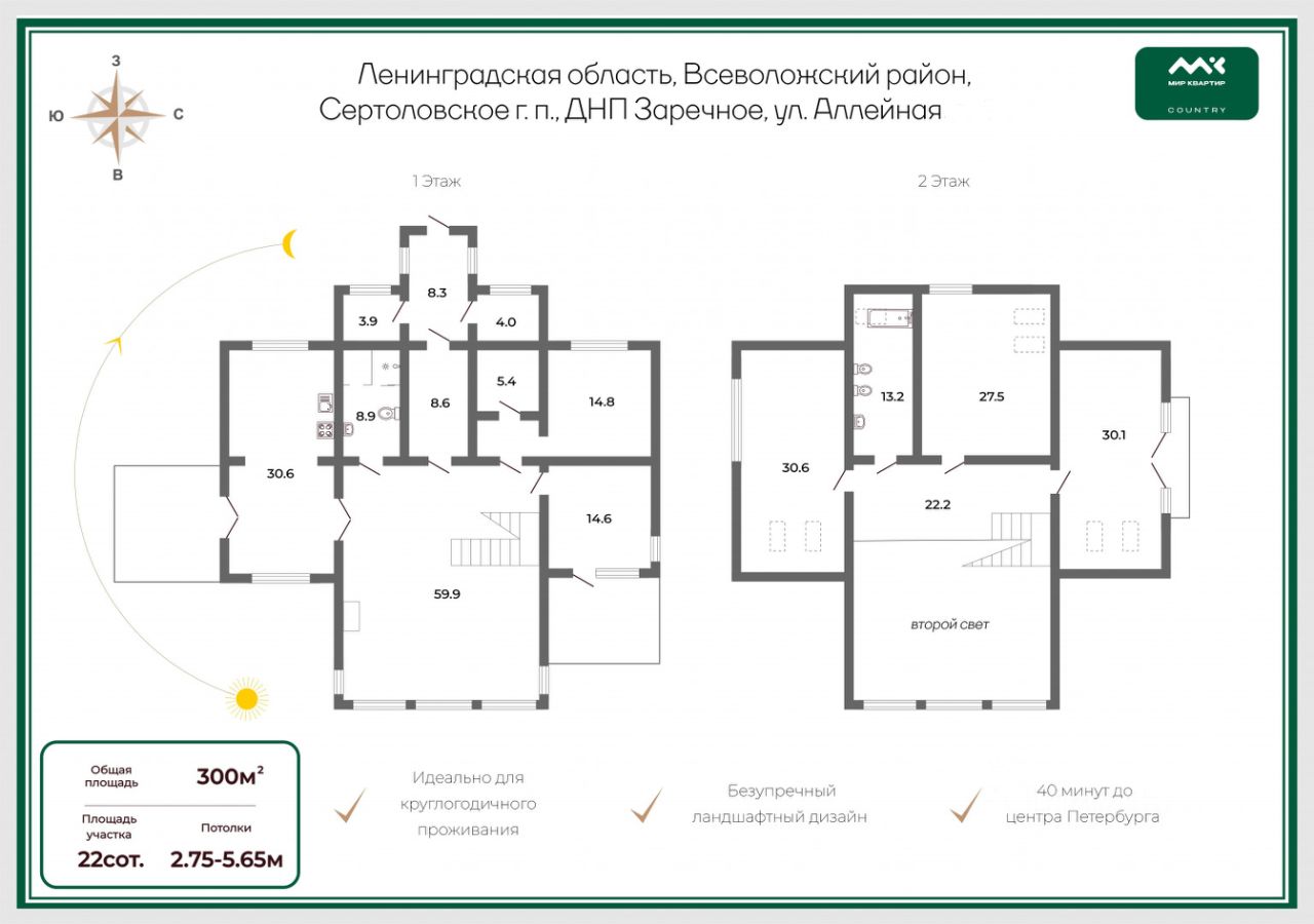 Удобное транспортное расположение рядом выезд на ЗСД, 40 мин до центра города, все необходимое есть рядом с поселком магазин фермерских продуктов, аптека и т.д.