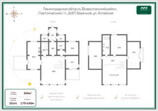 - основной дом 300 кв.м. с террасой и балконами,