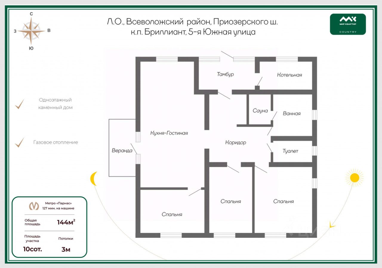 *Площадь дома — 144 м² (жилой, зарегистрирован)