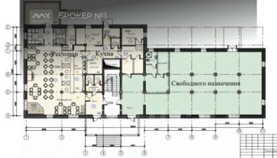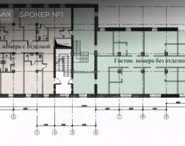 На первом этаже располагается ресторан и зона свободного назначения без отделки. На втором этаже - гостиничные номера - как существующие так и без отделки. Мансардный этаж занимает часть здания, без отделки.