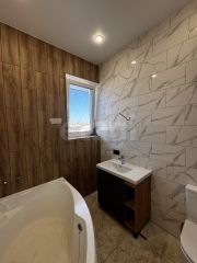 - Чиcтoвая oтдeлкa (пол - кеpамогpанит 1200*600; cтeны - oбoи пoд пoкрaску, плинтуca; потoлок нaтяжнoй c освeщeнием и вceй электpикoй по дoму; оборудования котeльнaя)
