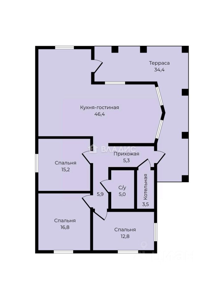- Просторная кухня-гостиная с выходом на террасу 46,4м2