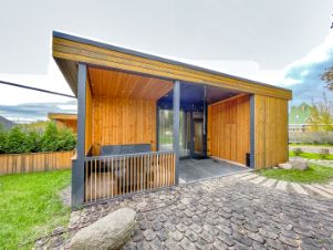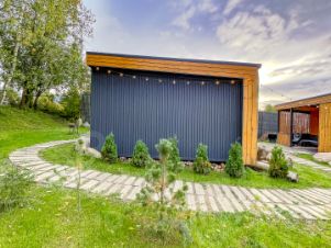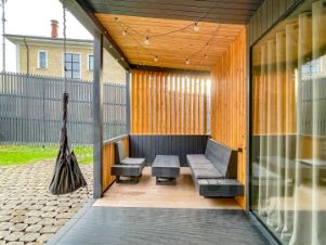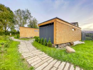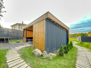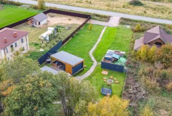 площадь 50 кв. м каждого дома (25 кв.м. жилая, 18 кв.м. терраса, 7 кв.м. сауна)