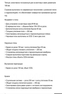 Фундамент - винтовые сваи, стены заполнены утеплителем, отделка с обеих сторон
