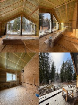 Пространство между элементами каркаса заполнены утеплителем, для защиты от влаги и ветра использовали гидро- и пароизоляционные мембраны