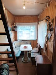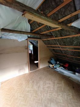 Просторный дом в котором комфортно расположились две больших комнаты на первом этаже, кухня и две комнаты на мансардном этаже.