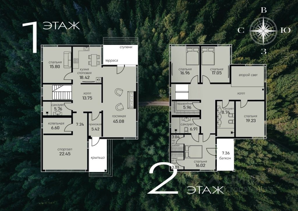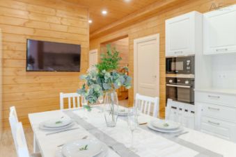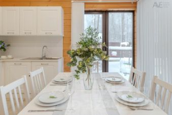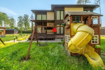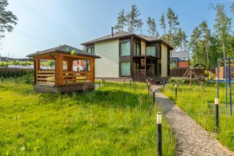 Дом продается со всей мебелью и техникой. На первом этаже дома располагается просторная гостиная с дровяным камином и вторым светом, оснащенная кухня-столовая с выходом на террасу, которая обращена в сторону соснового леса, гостевая спальная комната, спорт зал или просторный кабинет, гостевой санузел, котельное помещение, постирочная, прихожая и холл. На втором этаже располагается жилая зона с хозяйской мастер-спальней с собственным санузлом, двумя гардеробами и выходом на балкон, три изолированные детские спальные комнаты с панорамным остеклением через которое виднеются кроны вечно зеленых сосен и просторный общий санузел и постирочная.
