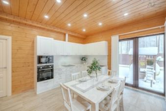В непосредственной близости к лесной зоне на участке построена баня с купелью, комнатой отдыха и санузлом. Рядом с баней предусмотрена площадка для установки большого каркасного бассейна на летнее время. Участок по периметру огорожен забором на ленточном фундаменте и имеет два заезда через автоматические откатные ворота. Основной заезд на парковку перед домом вымощен тротуарной плиткой. Второй заезд технический с навесом для 2 а/м и гаражом для хранения инвентаря и кроссовой техники. У участка всего два соседа, а третей стороной он граничит с землями государственного лесного фонда. В дом заведено: - 30кВт электричества - Центральное водоснабжение - Установлена канализация - Заведено оптоволокно - Установлено видеонаблюдение - Магистральный газ.