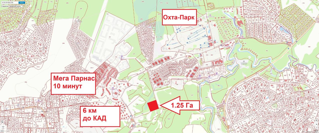 Продаётся земельный участок 1,25 га рядом с Охта Парк