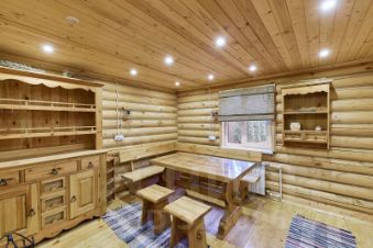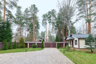 На участке произведен ландшафтный дизайн и живая изгородь. Так же на участке есть баня с зоной отдыха и дом для персонала.