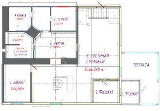 Гостиная/столовая - 66,5 кв.м.