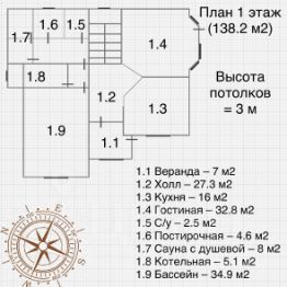 • Гараж на 1.5 машины. В доме газовый котёл Buderus. Тёплые полы, радиаторы. Много точек по свету. Бассейн глубиной 2 м, сауна, камин. Все комнаты солнечные. Очень удобная планировка.