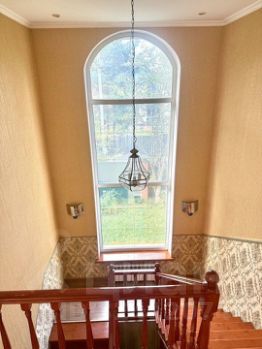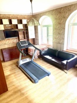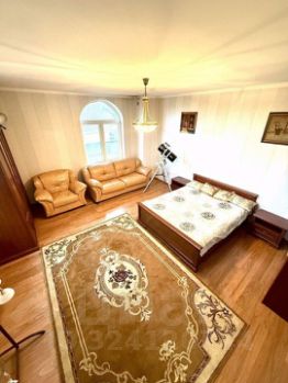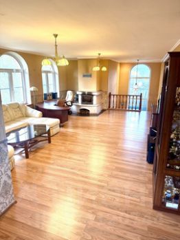 Гостиная с камином в 20 кв.м, кухня-столовая 30 кв.м., зал с камином для приема гостей в 40 кв.м., две спальни по 25 кв.м и два санузла и множество больших окон дает воздух, которого не имеет городская застройка.
