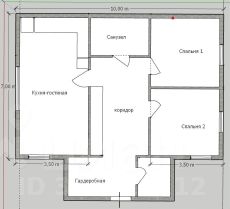 Гостевой дом. - 75 кв.м. 1 этажный построен из газобетона, фундамент ж/б плита, кровля металлочерепица. Удобная и функциональная планировка: большая кухня-гостиная, гардеробная, две спальни.
