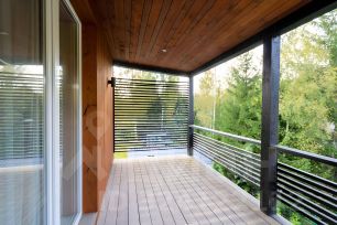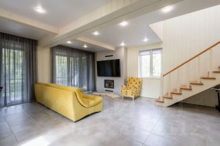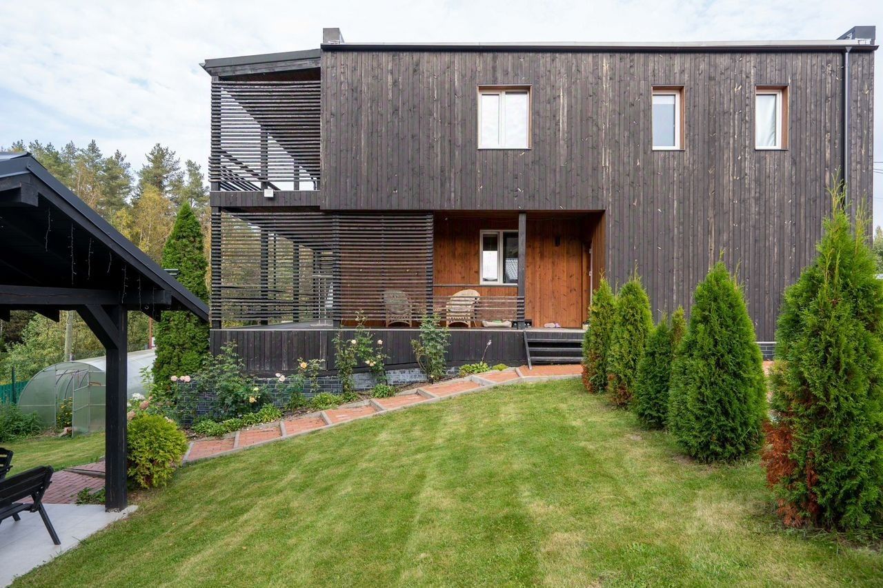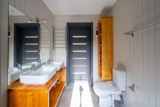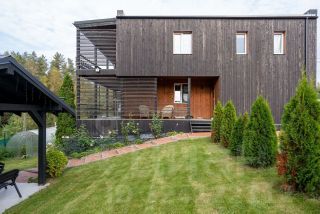 Жилой дом 214 кв.м. постpоен по каркасной технологии в 2 этажа, имеет продуманную функциональную планировку: 1й этаж кухня-гостиная 38 кв.м, санузел/сауна, гардеробная, подсобное помещение, просторная терраса 30 кв; 2й этаж - 4 спальни, санузел, гардеробная, терраса. Фундамент - ж/б сваи, плоская кровля из пвх мембраны. Коммуникации: электричество 15кВт, питьевая вода из артезианской скважины 206 метров, автономная станция биологической очистки, отопление электрич.котел, теплые полы и радиаторы.