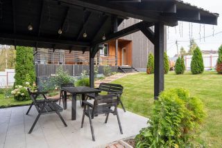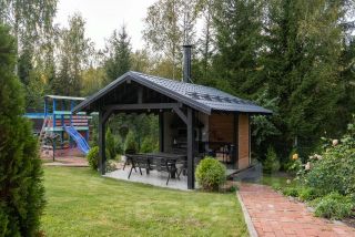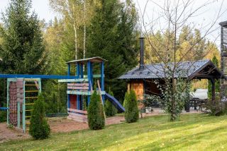 Участок максимально благоустроен для создания комфортной жизни на природе, имеется детская площадка, большая парковка, беседка, гриль-зона, выполнено озеленение (высажены плодовые деревья и кустарники, цветочные клумбы), обустроены тротуары, газон.