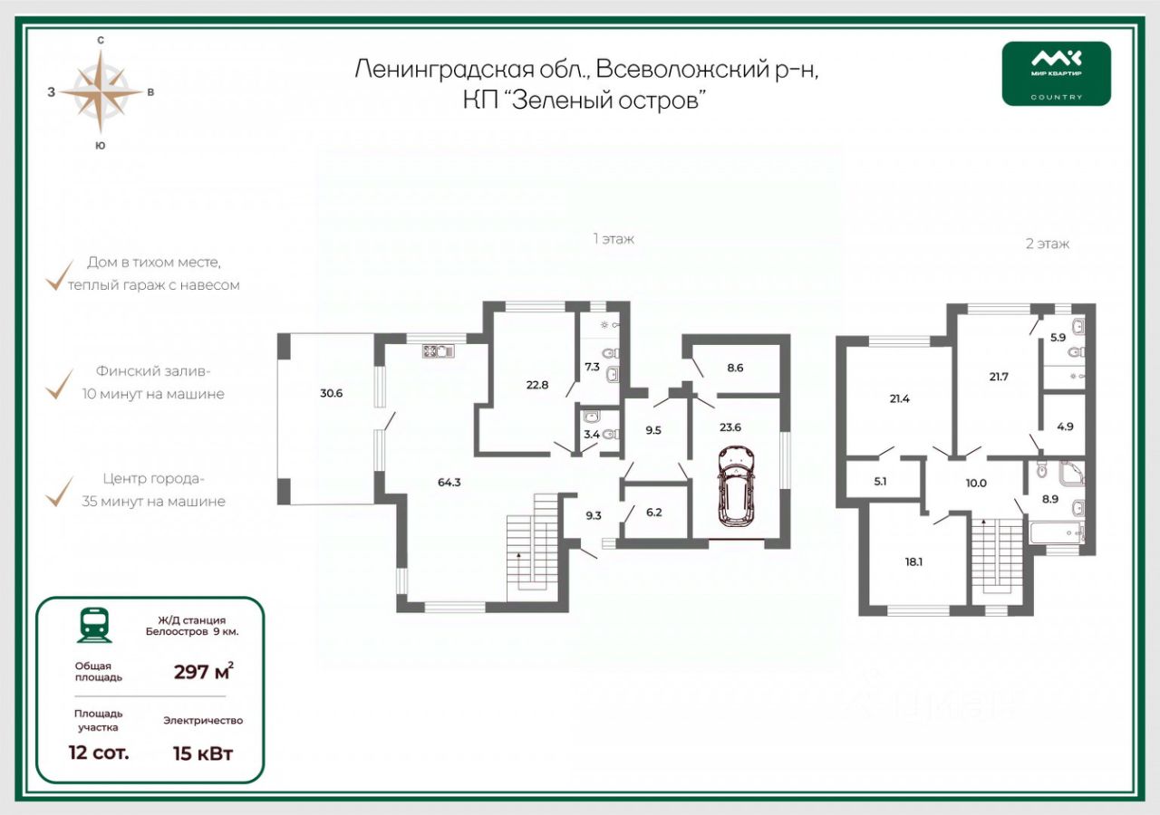 Дом расположен в закрытом элитном коттеджном поселке "Зеленый остров".