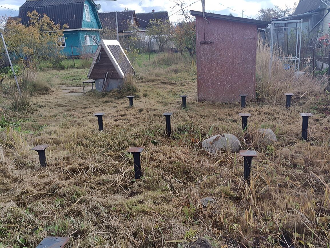 На участке: гараж/хозблок. Есть каркас для летнего душа. Под баню подготовлен фундамент из 20 свай.