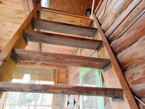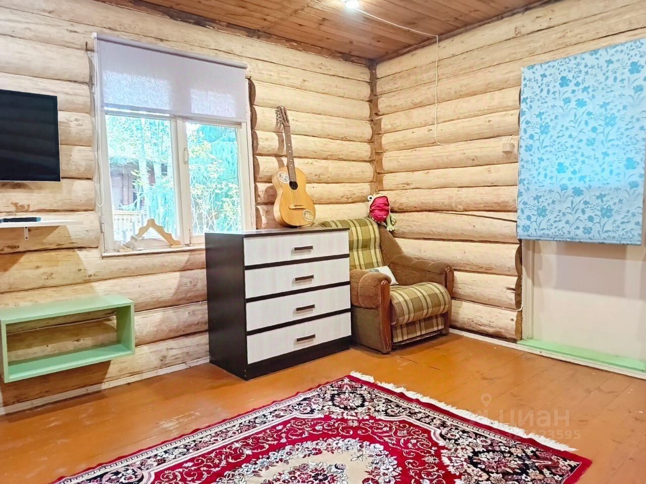 Дом построен из бревна ели и стоит на блочном фундаменте. Кровля -шифер. Пол - доска. Утепление пола 150 мм. Окна -деревянные.
