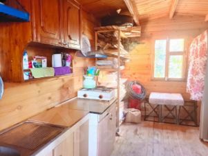 На первом этаже: веранда и комната с металлической печью. Очень тепло даже зимой.