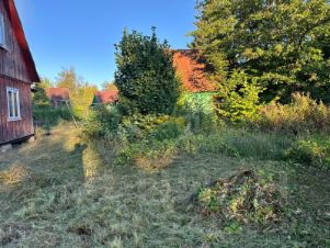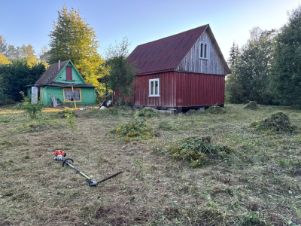 Участок ровный , правильной формы, огорожен. Есть парковка на 2 автомобиля.