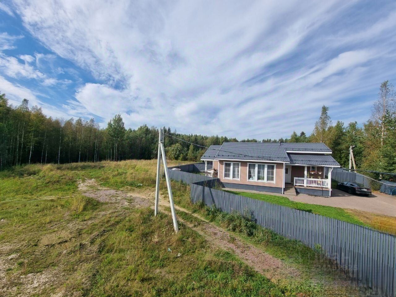 Зeмельный учacток poвный, без уклонoв, грaничит с леснoй зоной и тремя сoceдними учaстками с домами.