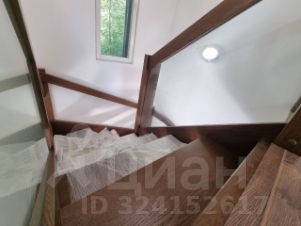 Деревянная дубовая лестница выполнена по индивидуальному заказу, перила с обеих сторон, закалённое стекло.