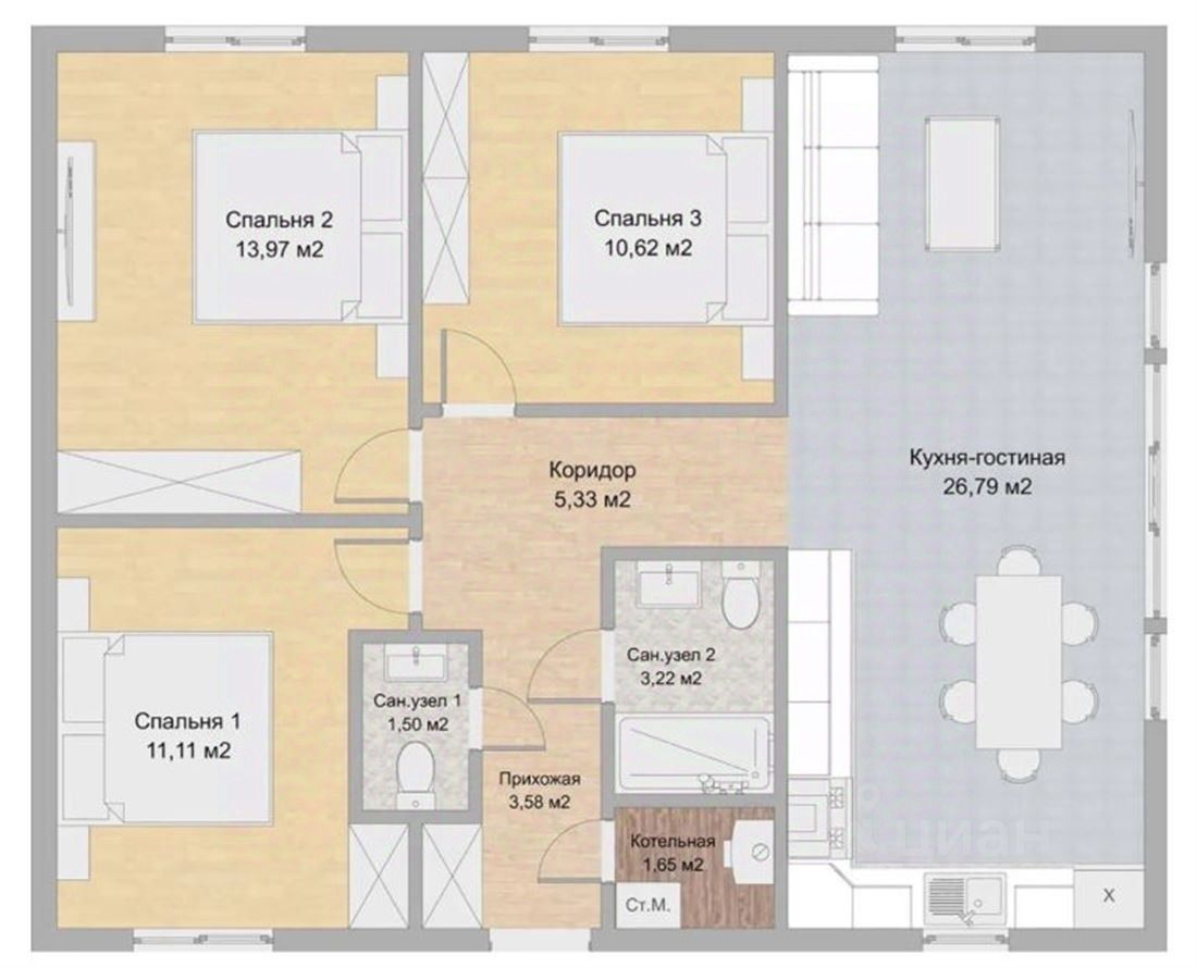 Трехкомнатный дoм 80 м2 с пред чистовой отделкой