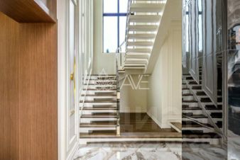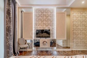мебель, выполенная на заказ в сответствии с дизайн-проектом и продуманные гардеробные зоны окружают комфортом;