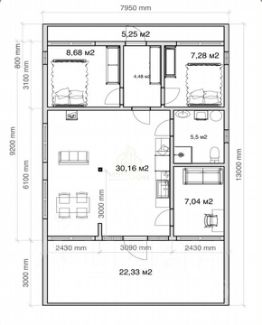• Площадь: Утепленная часть — 73 м² + терраса 22 м²