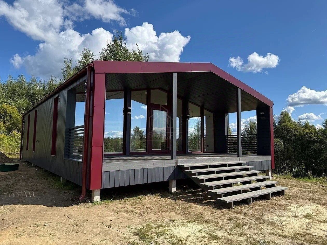 Большая терраса (22 м²) и панорамные окна наполняют дом светом и ощущением свободы.