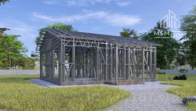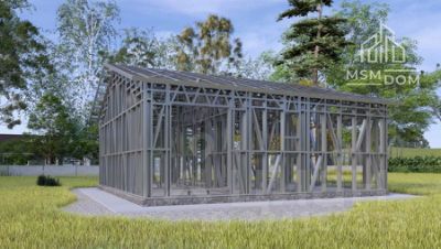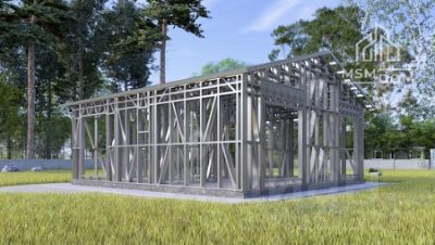 Каркас дома изготовлен из оцинкованного металла по технологии ЛСТК. Можно смело сказать дом простроен на века, производитель дает пожизненную гарантию на каркас дома. Фундамент винтовые сваи.