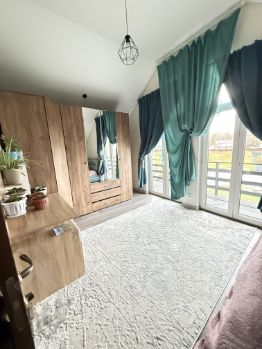 Продается уютный светлый дом с качественным евроремонтом в п. Владимировка. Дом построен по технологии BarnHouse в 2021 году, отделан качественными материалами, межкомнатные двери и часть мебели из массива. На первом этаже терраса, на втором ложия. Мебель и техника частично (примерно 50/50) остаются новому собственнику. В доме на 1-м этаже — просторная гостиная 27,8 кв.м., комната 11,5 кв.м., с/у 4,3 кв.м., бойлерная 4,4 кв.м., на втором — 3 комнаты (21,0+11,4+8,8 кв.м.) и с/у 3,5 кв.м. Фундамент утепленная шведская плита, электричество 15 кВт, газ по границе участка, вода — скважина, канализация — септик.