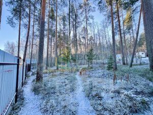 На участке оставлены сосны и березы, протекает естественный ручей (Зaозepный) в дренаже по краю участка. Грибы, черника и брусника растут прямо на участке.
